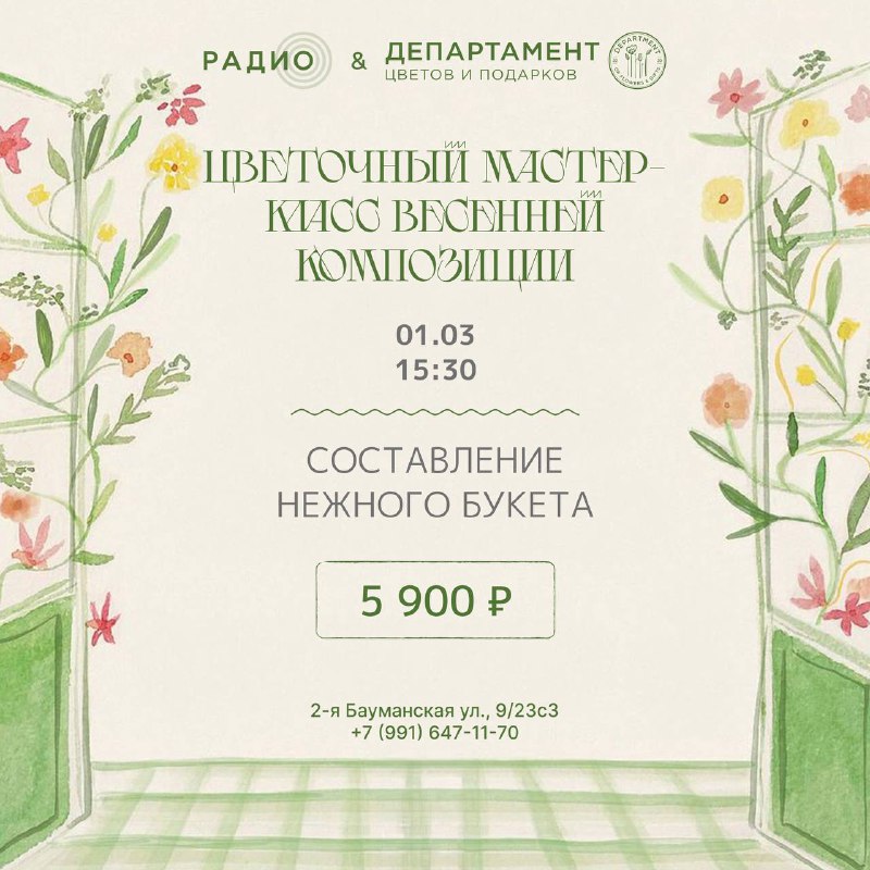 RADIO Нежный переход от снежного сезона к расцветающей весне. В первый день марта мы встретимся в «Радио», чтобы создать его своими руками, вместе Depart Flowers. Тюльпаны, нарциссы, ароматные ветви