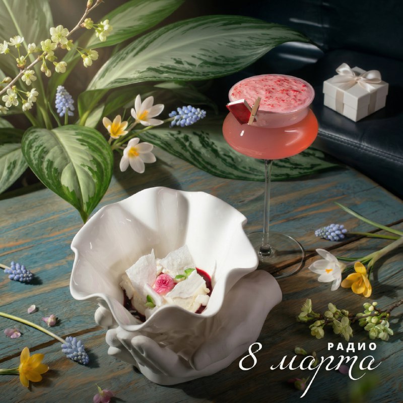 8 марта — особенный день, когда хочется дарить радость, вдохновение и трепетные воспоминания. Каждую гостью ждет подарок от шефа Александра Петрунина: десерт «Павлова» с брусничным гелем, хрустящее