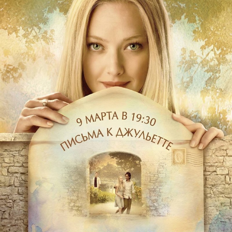 RADIO 9 марта | Понедельник | 19:30 Кинопоказ | Письма к Джульетте Молодая американка София помогает в Вероне отвечать на письма, адресованные Джульетте. Случайно она находит послание 50-летней давн