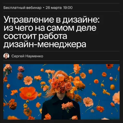 Из чего на самом деле состоит работа дизайн-менеджера? Разбираемся уже сегодня на вебинаре с Сергей Науменко. Эфир будет полезен всем, кто хочет узнать, какие инструменты, методы и шаги помогут пере