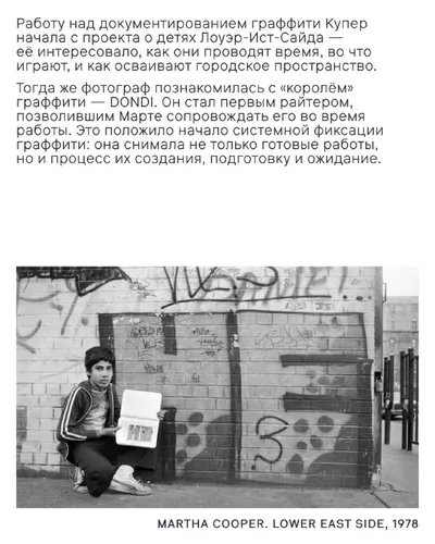 Пару дней назад Марте Купер, ключевой фигуре в истории документирования граффити, исполнилось 83 года. Вместе с друзьями из «Стрит-арт хранения» вспоминаем, почему мы ее любим. Фотографии Купер пере