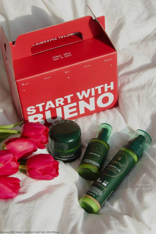 С брендом Bueno я познакомилась лет семь назад. И сразу у нас случилась любовь. А вообще, Bueno основан еще в 2016 году. В основе - эффективные формулы: пептиды, факторы роста, увлажняющие и восстана
