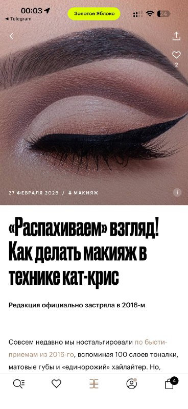 не могу не похвастаться 🥹 со мной вышла небольшая, но моя первая статья на сайте золотого яблока🩷🍏 https://goldapple.ru/flacon/article/raspakhivaem-vzglyad-kak-delat-makiyazh-v-tekhnike-kat-kris
