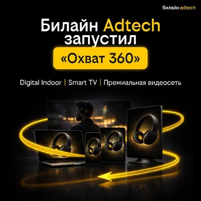 😊 Охват 360 – продукт, который объединяет Digital Indoor, Smart TV и премиальную видеосеть. В результате решение охватывает различные экраны, с которыми пользователь сталкивается в течение дня: сма