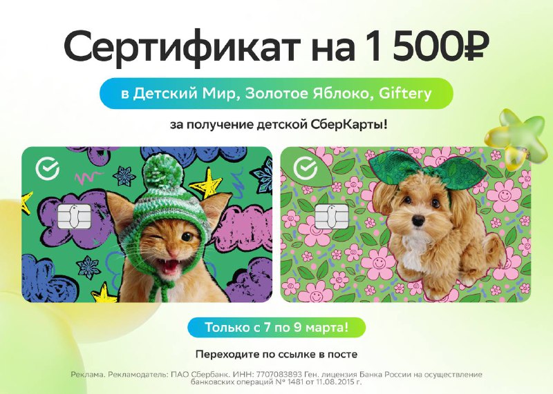 ❗️последний день Сертификат на 1 500₽, детская СберКарта🔥 Оформляйте карту по ссылке https://sberbank1.prfl.me/begi_hvatay2/17ww4b?erid=2RanykAwENE Родителям: ✨ 0 р. за оформление ✨ Все покупки по
