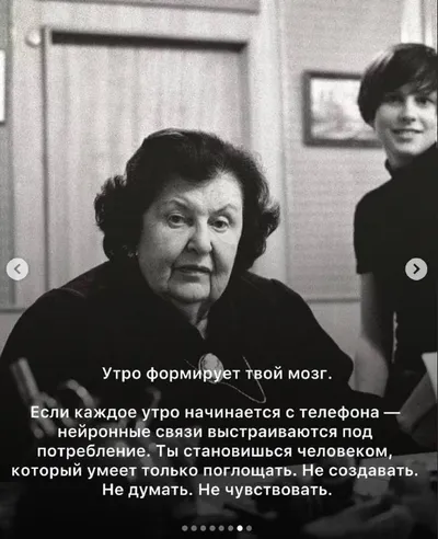 Интернет снова «цитирует» мою бабушку — Наталью Петровну Бехтереву Завирусился пост, где она якобы предупреждает нас: Не берите телефон с утра, не читайте новости, потому что эта привычка разрушает