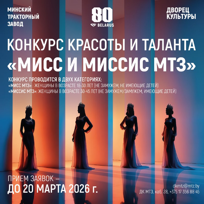 ⭐️ Мисс и Миссис МТЗ выберут на нашем предприятии! Объявляем о проведении конкурса красоты и таланта, посвященного 80-летию МТЗ и Году белорусской женщины. Все подробности – в @belarustractors_peopl