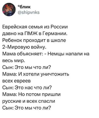 Юмор и развлеченияКанал качественного юмора. Качественного черного юмора. 🐾Проголосовать за канал - https://t.me/boost/beleebelogo 🐾Выразить благодарность за хорошее настроение - 2202208325471002 По всем вопросам к владельцу канала - @kseniya_horoshaya
