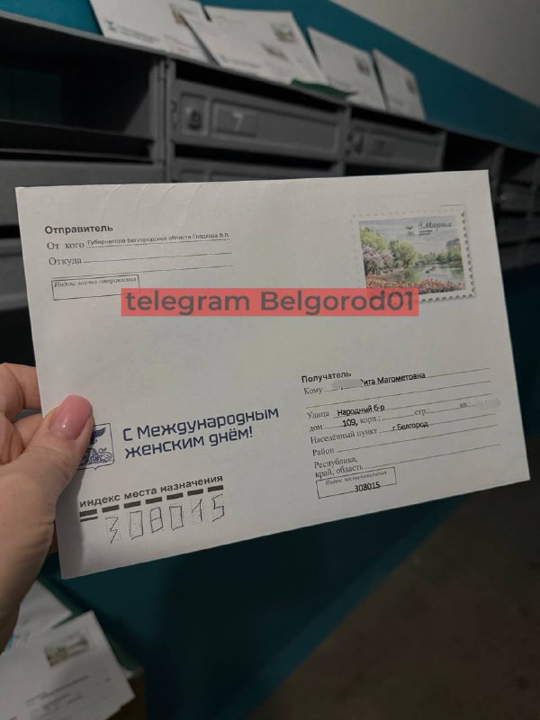 Губернатор отправил поздравительные письма белгородкам 💌 Но они не дойдут до своих получательниц. Всё потому что сотрудник Почты России принёс и оставил их в доме на Преображенской, 120. На конверт