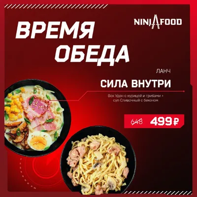 NinjaFood отменяет обеды из дома на работе! ⚔️ Есть простое и вкусное решение — забудь про домашние обеды, потому что теперь в меню NinjaFood целых 8 новых ланчей, которые сделают твой обеденный пер