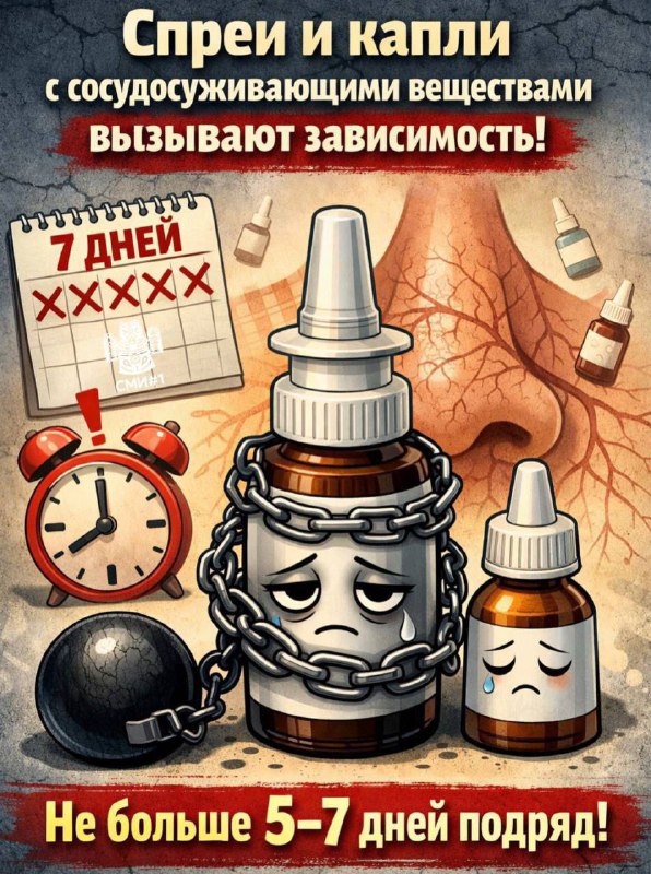 🤧 Насморк прошёл, а зависимость осталась: чем опасны капли в нос Спреи и капли с сосудосуживающими веществами (нафтизин, ксилометазолин, оксиметазолин и т.д.) быстро вызывают зависимость — сосуды в