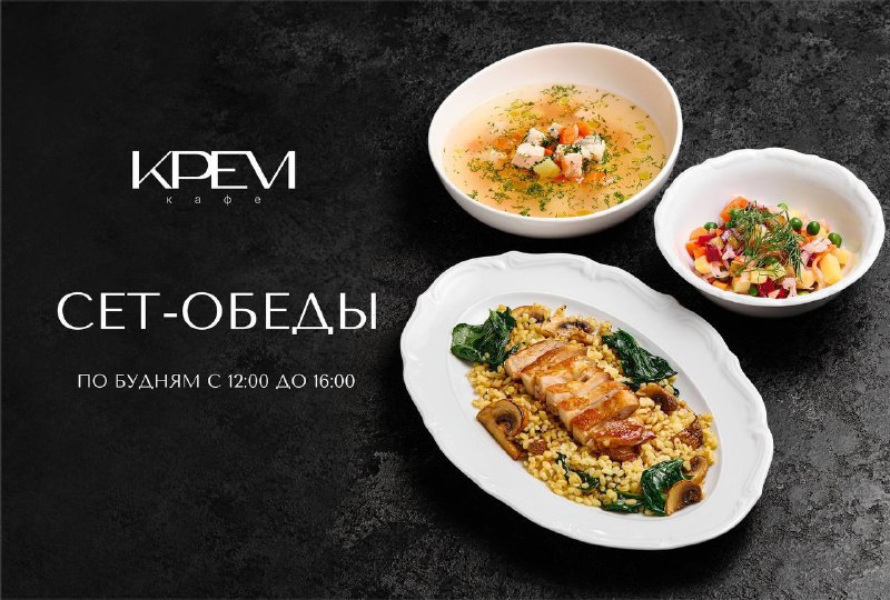 Обеды в Крем В это невозможно поверить — по будням с 12:00 в кафе «Крем» официально включается обеденный режим! Теперь здесь во время рабочей паузы можно вкусно и душевно поесть, выбрав блюда под сво