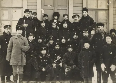 Группа железнодорожных служащих ст. Вялка Николаевской железной дороги. Новгородская губерния, 1906 г. Бѣлое Дѣло