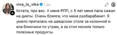 На днях я видела у известного предпринимателя заметку про РПП! Испытала огромную благодарность за то, что Виктория об этом говорит. Ведь огромное количество женщин, которые сидят на диетах, голодают,
