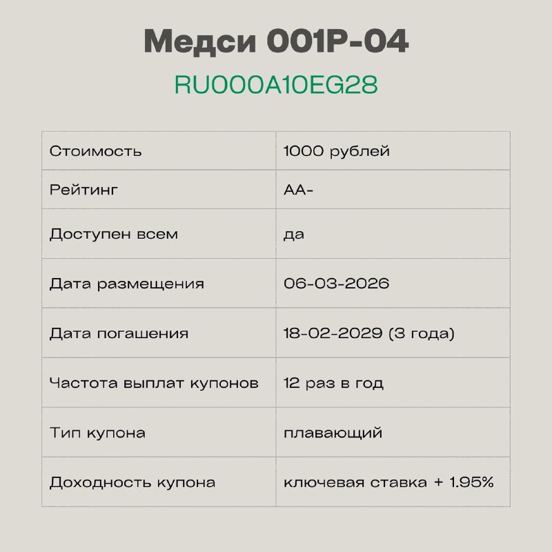 ✅ Медси 001P-04 — RU000A10EG28 МЕДСИ – российская сеть частных медицинских клиник. Компания предлагает полный спектр медицинских услуг — от первичного приема и скорой медицинской помощи до высокотехн