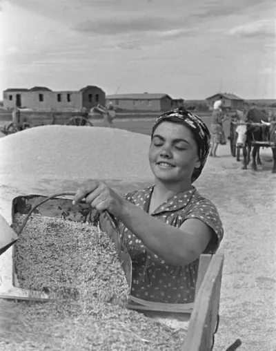 Зерно нового урожая в зерноводческом колхозе в Чкаловской области (ныне - Оренбургская область), 1956 год. СССР 2.0 🚀