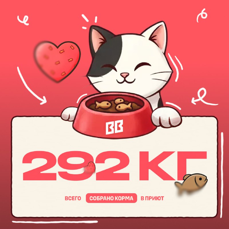 ИТОГИ БЛАГОТВОРИТЕЛЬНОЙ АКЦИИ ❤️ Мы подсчитали все «лапки», пересмотрели кучу фотографий ваших пушистиков и готовы объявить результаты. В приют «Котосчастье» отправится 292 кг корма — вместе с вами