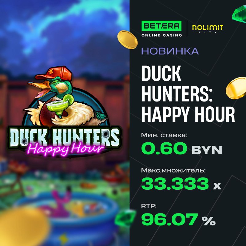 Эксклюзивная новинка от Nolimit City – Duck Hunters: Happy Hour 🦆 Распаливайте гриль и заряжайте барабаны — пришло время охоты! Только вот вопрос: то ли уток на экране стало больше, то ли у админа п