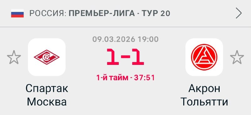1-й Тайм | Тотал 0.5-1 (Б)⚽️
