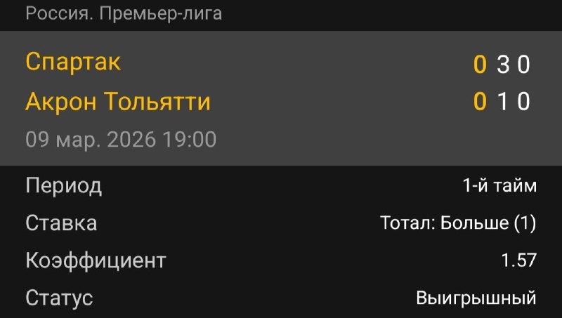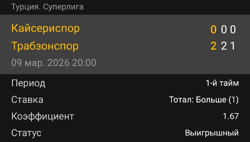 1-й Тайм | Тотал 1.5-2 (Б)⚽️