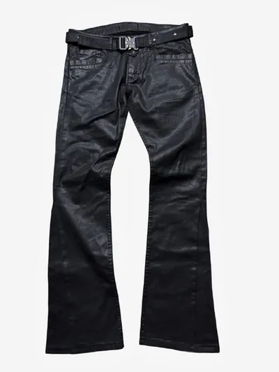 JEANS «WAX BASE»+BELT «WAX CROSS» Базовые черные джинсы, полностью покрытые WAX эффектом (не каменные, мягкие джинсы). Слим клеш фит. Продажа вместе с ремнем. ПАРАМЕТРЫ (1 of 1): Полупояс 43см; Бедр