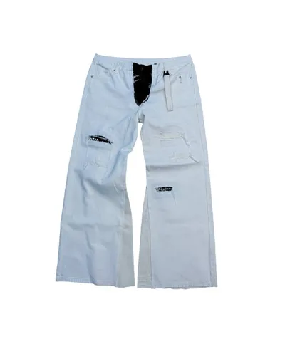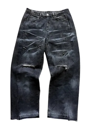 JEANS «WHITE SPRAY» Джинсы плотные, из 100% хлопка. Основа джинс - серый цвет, который окрашен в черную акриловую краску с небольшим смешиванием глянцевого лака+добавлены детали бликов (складок) в ру