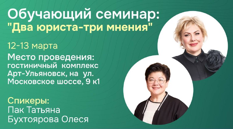 Коллеги, приглашаю вас на обучающий семинар «Два юриста — три мнения», который состоится 12–13 марта в городе Ульяновск Впервые в нашем городе — два практикующих юриста с реальным судебным опытом и р