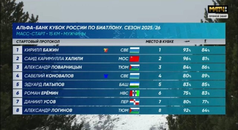 Прямо сейчас на Матч ТВ начинается заключительная гонка Альфа-Банк Кубка России этого сезона – мужской масс-старт ❤️ Старт-лист здесь 👆 Трансляция – на Матч ТВ 🤝🤝