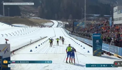 🥇⚡️ Анастасия Багиян выиграла золото Паралимпиады-2026! Вместе со спортсменом-ведущим Сергеем Синякиным она финишировала первой в лыжном спринте среди спортсменов с нарушением зрения! Сегодня на ц