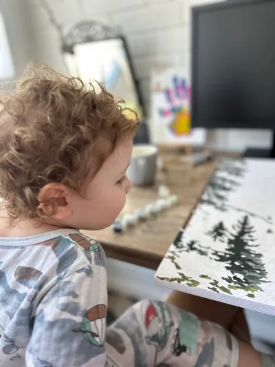 А это мы вернулись домой… мальчик решил помочь мне готовить блины, а папа встретил нас с цветами и весенним настроением 💓 Пижама от OuMoona как никогда кстати к весеннему настроению