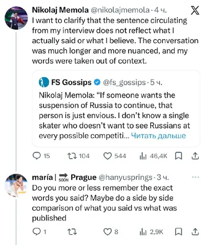 Думаю, раз уж слова Мемолы вчера циркулировали по всем российским СМИ и пабликам, его позицию тоже нужно подсветить. Речь о фразе «Убежден, что все остальные спортсмены хотят того же, что и я. Если кт