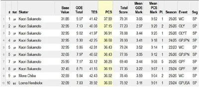 Тем временем Каори Сакамото обновила мировой рекорд по оценке за компоненты в короткой программе. Ее результат – 37,89, есть одна десятка за скольжение от Израиля. Предыдущий рекорд – и вообще 8 из 10
