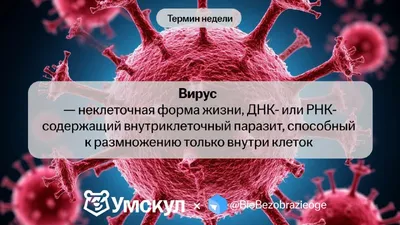 Всех с понедельником! Новый термин недели — вирус 🤩 🔣 не имеют клеточного строения 🔣 не имеют собственного обмена веществ, используют обмен веществ клетки хозяина 🔣 самовоспроизведение — проявля