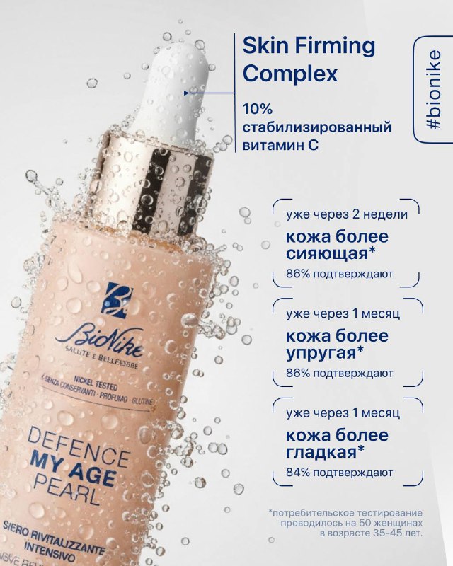 Результат, который говорит сам за себя! ✨ 86% участников нашего потребительского исследования отметили, что кожа стала более упругой и сияющей при использовании сыворотки Defence My Age Pearl с 10% с
