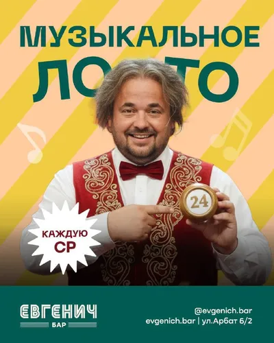 В караоке-рюмочной «ЕВГЕНИЧ НА АРБАТЕ» появился формат, который реально заходит – ребята устраивают музыкальное лото каждую среду Атмосфера веселья, азарт, новые знакомства – всё как мы любим. Ну и