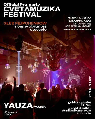 21 марта в YAUZA PLACE пройдет пре-пати фестиваля CVETAMUZIKA от продюсера электронной музыки Глеба Филипченкова Всё как мы любим: диджеи, селекционеры и танцы до утра Билеты