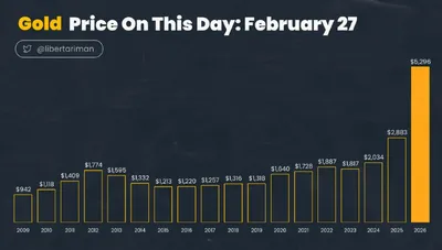 🌉 Цена золота каждое 27 февраля. Bits.media
