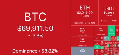⚡️Курсы основных криптовалют на 06.03: 🔴 BTC - $69,911 (-3.8%) 🔴 ETH - $2,045 (-3.8%) 🔴 SOL - $86 (-5.4%) 🔴 BNB - $638 (-2.9%) 🔴 XRP - $1.3 (-3%) 🔴 TON - $1.3 (-4.4%) Среди топ-20 криптоакт
