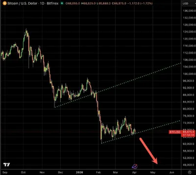 👑#BTC По битку что-то не очень красивая картинка рисуется. Есть шанс неплохо так завалиться 👉 Все о том, как получать доход в DeFi