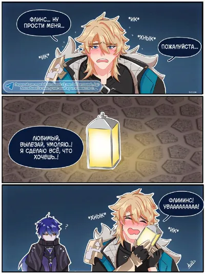 просто представьте, как Варка в Мондштадте, пьяный в стельку, так сильно скучает по Флинсу, что начинает рыдать у каждого зажжённого фонаря, который видит... 😭 ✨теги: #флинс #варка #вафли ✨автор: #_