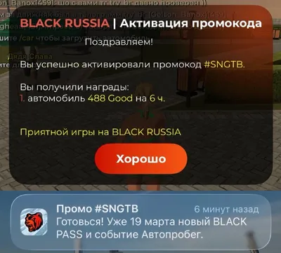 ☄️ Разработчики официально объявили об обновлении 19 марта, в честь этого они выпустили промокод - #SNGTB - Автомобиль Ferrari 488 GTB на 6 часов. 🔹Делитесь халявой с самыми близкими!