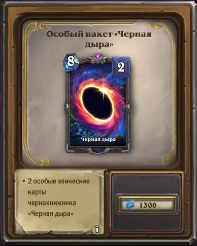Новые предложения в магазине Hearthstone Помимо предложений за 🏆, добавлено несколько особых карт. Наборы особых легендарных карт (х2), по 1300😅: • «Черная дыра» • «Планета-карлик» • «Болтливый а