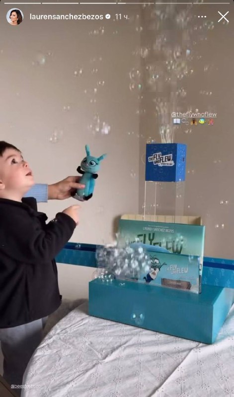 Лорен Санчез не сидит без дела и продолжает продвигать свою детскую книгу про муху, которая смогла летать. На фото её детская рассылка. Прикольная идея – открываешь игрушку, и вылетают мыльные пузыри.