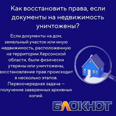 Утеряны документы на дом или землю в Херсонской области? Росреестр поделился с нами подробной инструкцией: куда идти за архивными копиями, зачем нужен суд и как подать заявление в ЕГРН через МФЦ или