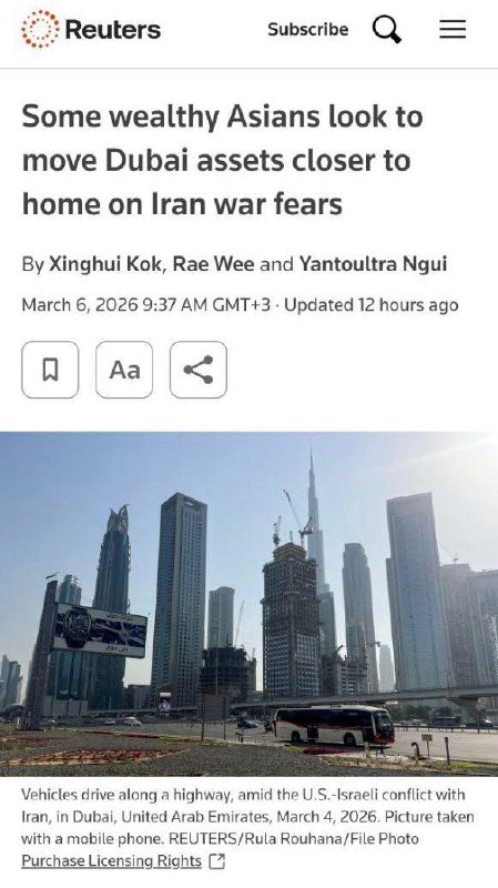 Богатые инвесторы начали выводить средства из Дубая, переводя активы в Сингапур и Гонконг. Клиенты из Восточной Азии обеспокоены конфликтом с Ираном. Эксперты отмечают, что обострение ситуации в регио