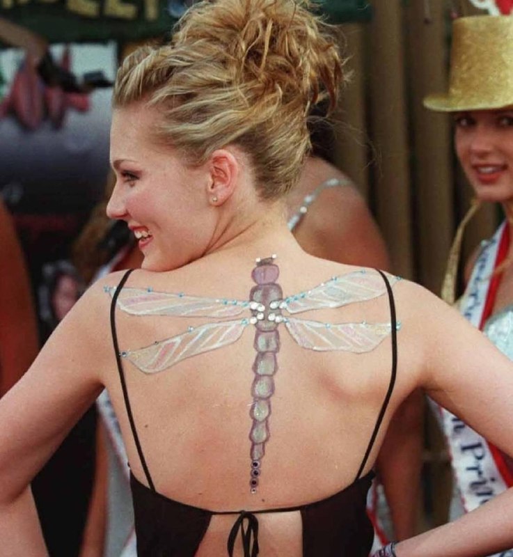 🦋 Кирстен Данст с нарисованной стрекозой на спине в 1999 году