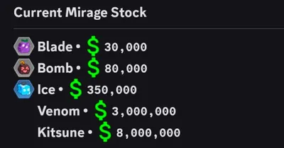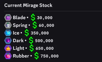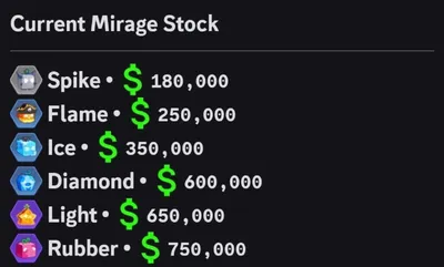 👑 Mirage Stock 👑 Обновится через 2 часа 🔜 ➖➖➖➖➖➖➖➖➖ 🔗 Blox Fruits | Сток | 💬 Наш чат