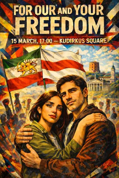 «За вашу и нашу свободу!» Иранцы и белорусы проведут совместную акцию в Вильнюсе 15 марта 📅 воскресенье, 15 марта 2026 📍 Вильнюс, площадь Винцаса Кудирки ⏰ 17.00