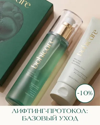 🦋 ЛИФТИНГ-ПРОТОКОЛ: БАЗОВЫЙ УХОД Набор Bohicare «Базовый уход» - готовое трехступенчатое решение для ежедневного применения. Продуманный лифтинг-протокол для более упругой, подтянутой и отдохнувшей