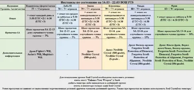 Актуальная табличка с дропом в инстах и прокачкой СА